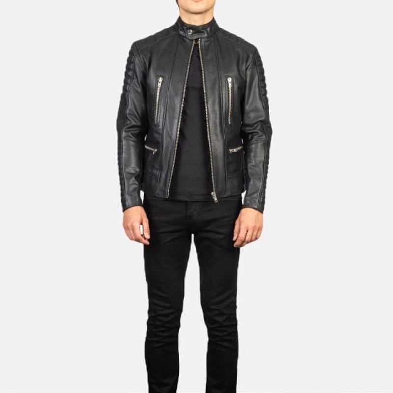 แจ็คเก็ตหนังแท้บุรุษสีตามสั่ง คอตั้ง พร้อมโลโก้ด้านหน้า เสื้อคลุมทนทาน ราคาโรงงาน