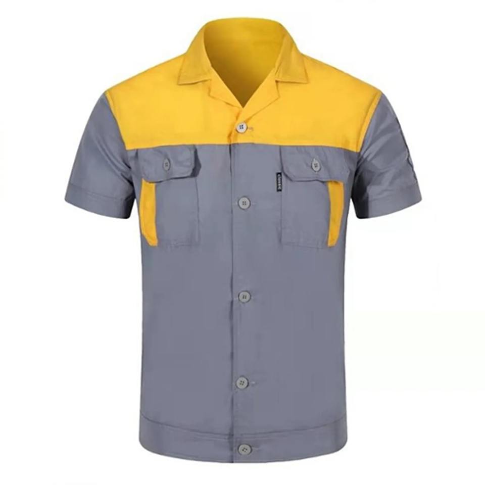 เครื่องแบบเจ้าหน้าที่รักษาความปลอดภัยปุ่มสีสันสดใสแบบกําหนดเองเสื้อเชิ้ตคอปกแขนสั้นสําหรับผู้ใหญ่