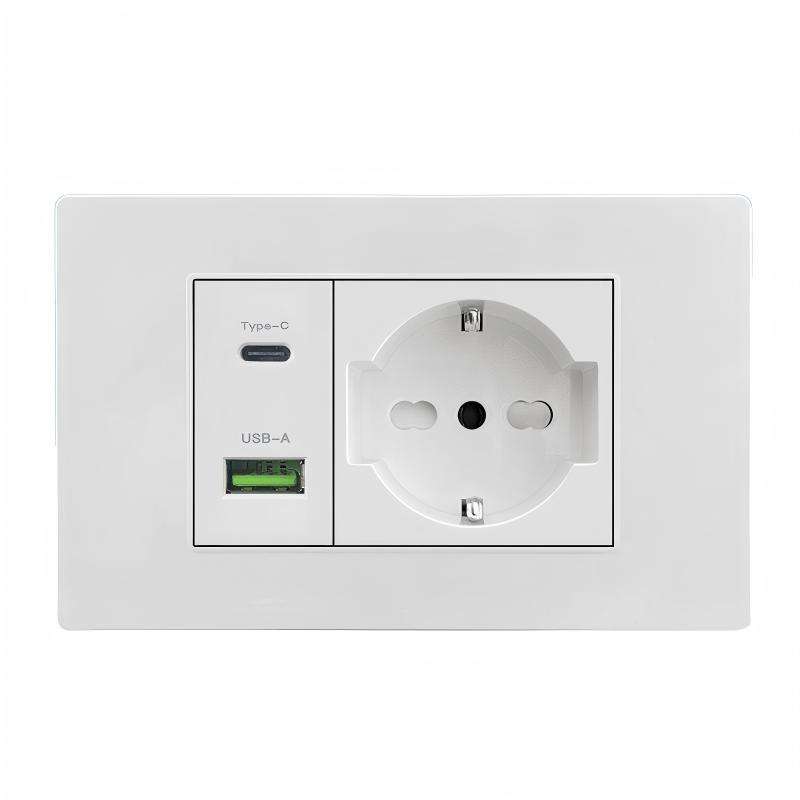 สวิตช์และเต้ารับแบบผสมผสานตามสั่ง ภาษาเยอรมัน อิตาลี แผงสัมผัส ทนทาน มาตรฐาน IT ปลั๊กติดผนัง 2 ช่อง USB A/2 ช่อง Type-C