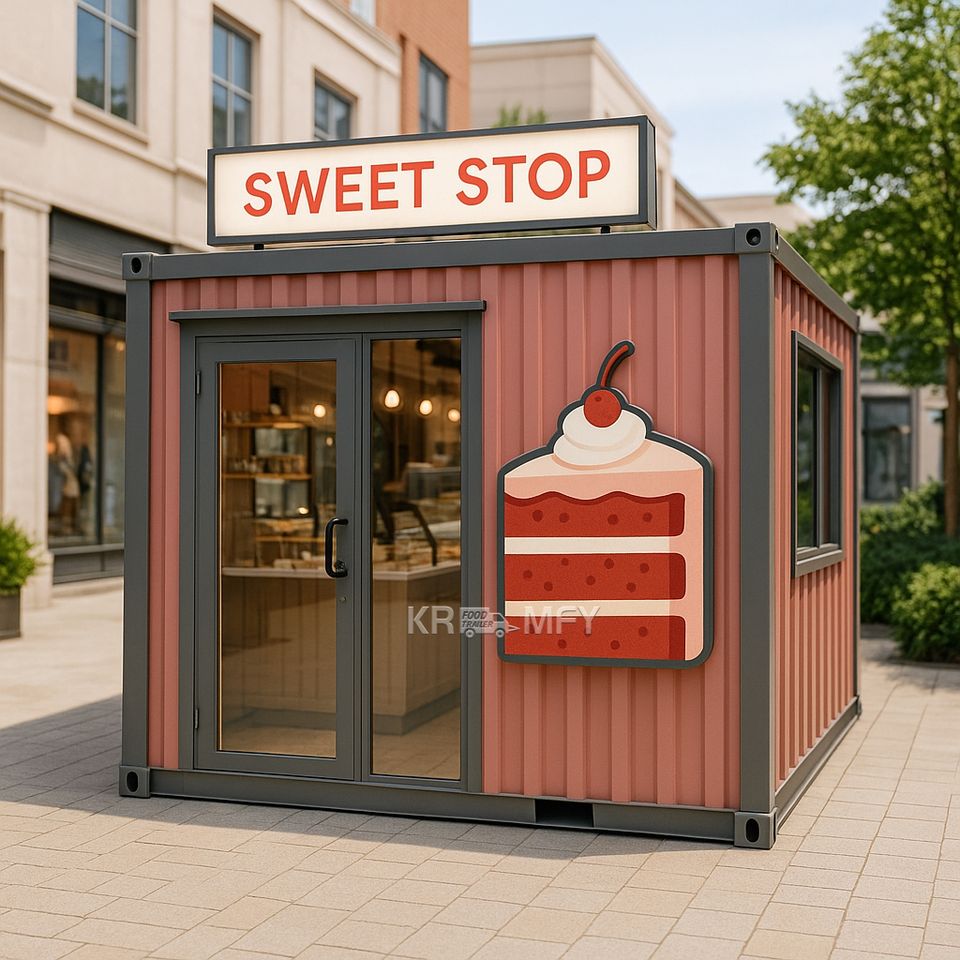 บ้านคอนเทนเนอร์สำเร็จรูปสไตล์ร่วมสมัยพร้อมร้านเบเกอรี่ขนาดใหญ่ ครัวเคลื่อนที่ และร้านอาหาร - แข็งแรงทนทาน