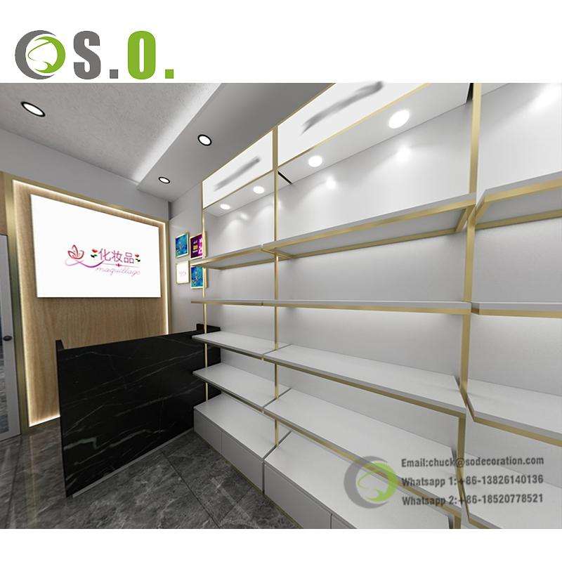 ออกแบบตกแต่งภายในร้านเครื่องสำอางแบบกำหนดเอง ตู้โชว์เครื่องสำอางทันสมัย เฟอร์นิเจอร์ร้านเครื่องสำอางแฟชั่น
