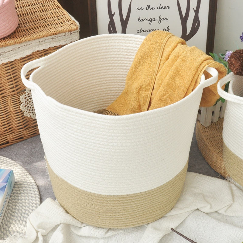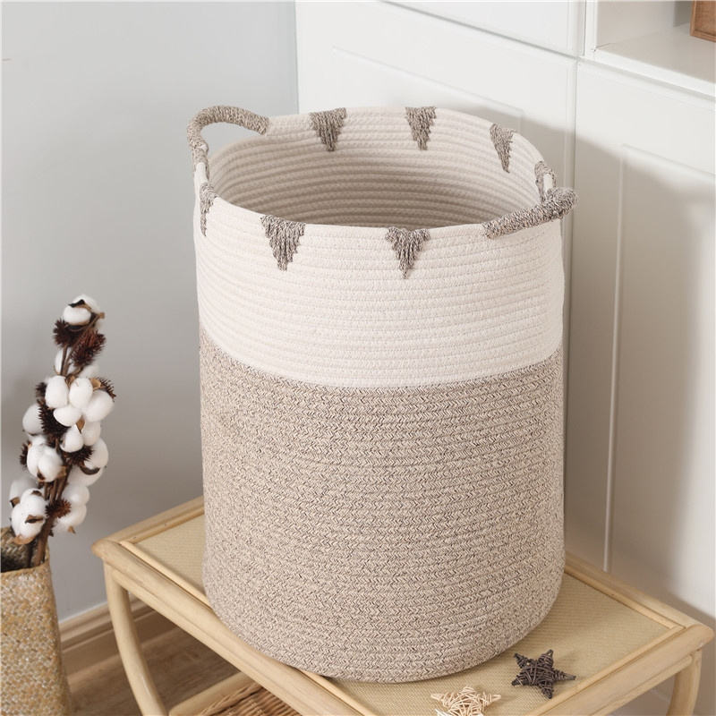 ตะกร้าผ้าคอตตอนพร้อมหูหิ้วตะกร้าซักผ้าสำหรับเด็กตะกร้าสานคอตตอนงานซักรีดของขวัญงานตามสั่ง