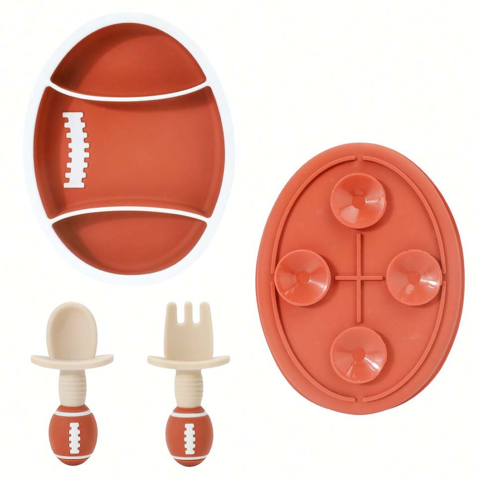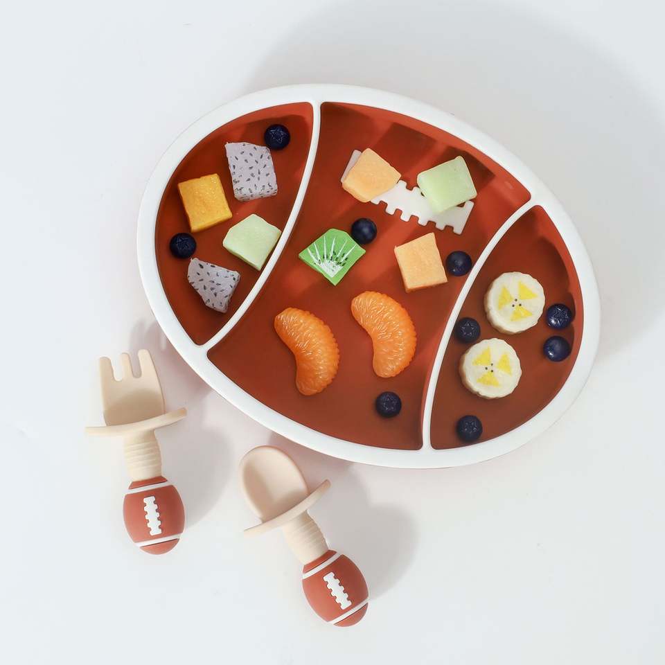 ชุดอุปกรณ์บนโต๊ะอาหารสำหรับเด็กวัยหัดเดินแบบแยกฟรี BPA รูปทรงลูกบอลสร้างสรรค์ออกแบบได้ตามที่ต้องการ