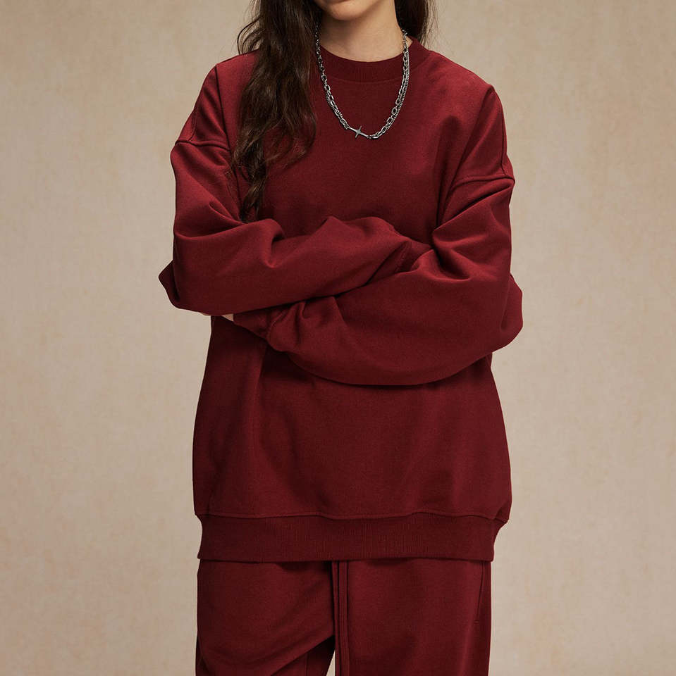 เสื้อสเวตเตอร์คอลูกเรือแบบเฟรนช์เทอร์รี่แนวสตรีทเสื้อมีฮู้ดและสเวตเชิ้ตโอเวอร์ไซส์สำหรับผู้ชาย