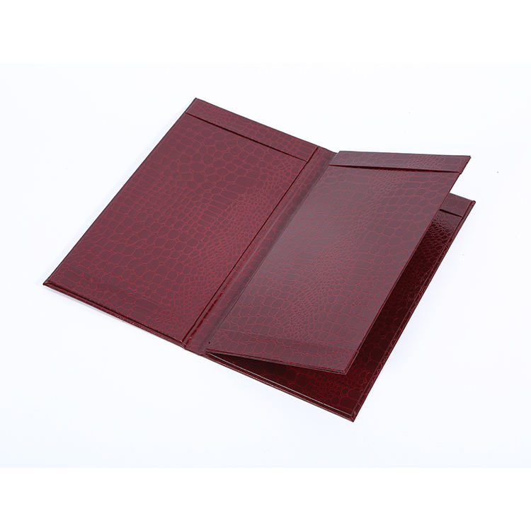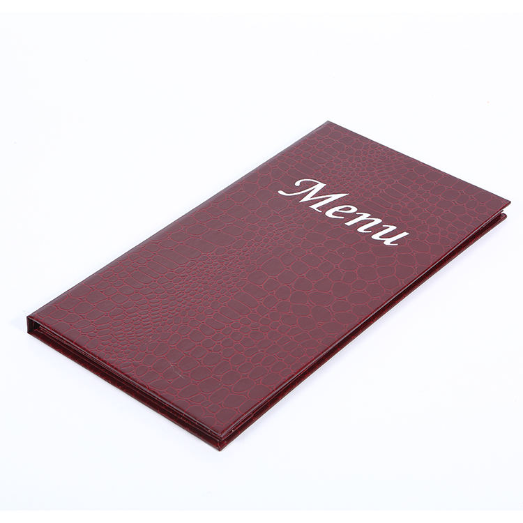 ปกเมนูหนังจระเข้เทียมแบบกำหนดเอง 4 ด้าน ปกเมนูหนังสั่งทำ ปกเมนูร้านอาหาร