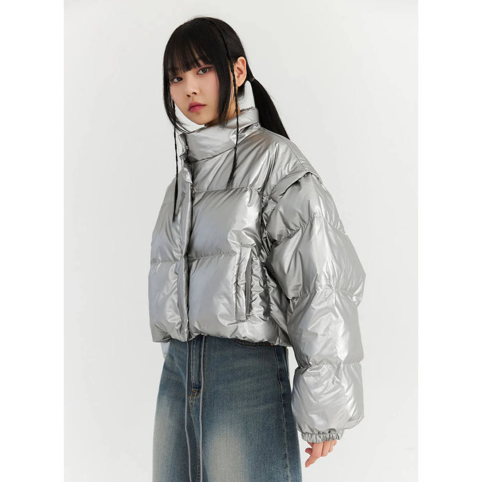 แจ็กเก็ตแขนยาวสำหรับผู้หญิงแจ็กเก็ตปลาปักเป้าโลหะแบบตัดซิปคอเต่าแบบปรับแต่งได้