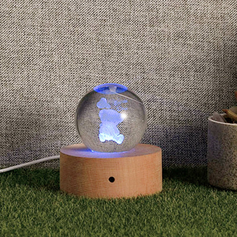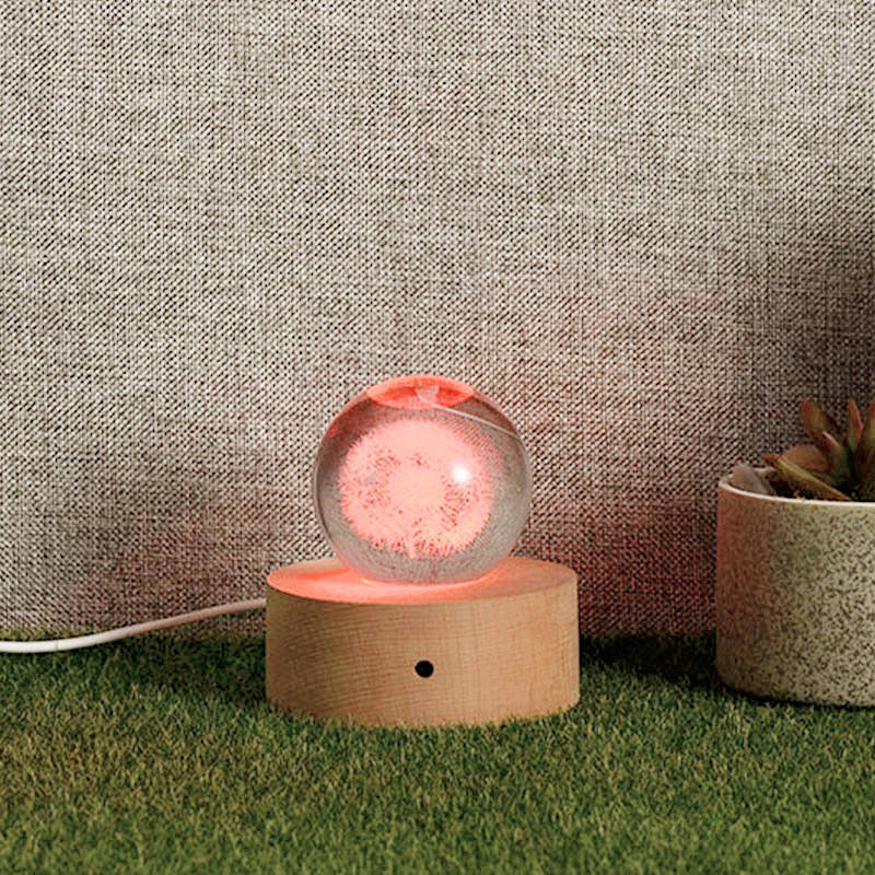 Name:Wooden Lamp Crystal Ball 3D Print In Various Shape Led Night Light