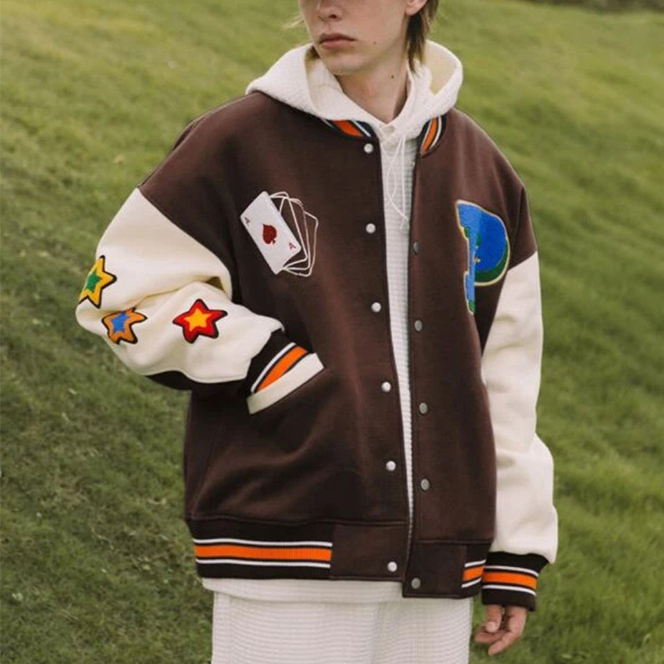 แจ็กเก็ตผ้ากำมะหยี่ปักโลโก้ผ้าวูลผสมแจ็คเก็ตทีมเบสบอลของผู้ชายแจ็คเก็ตเลตเทอร์แมนลำลองออกแบบได้ตามต้องการ