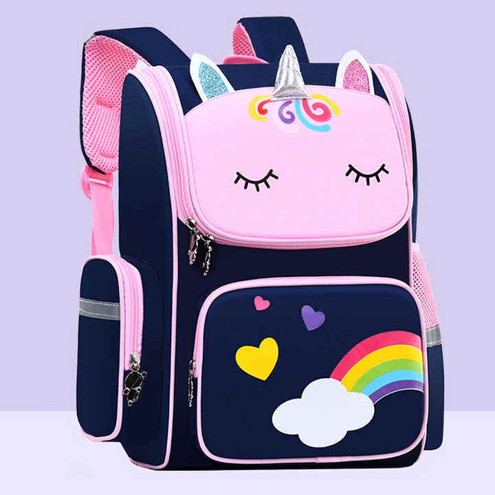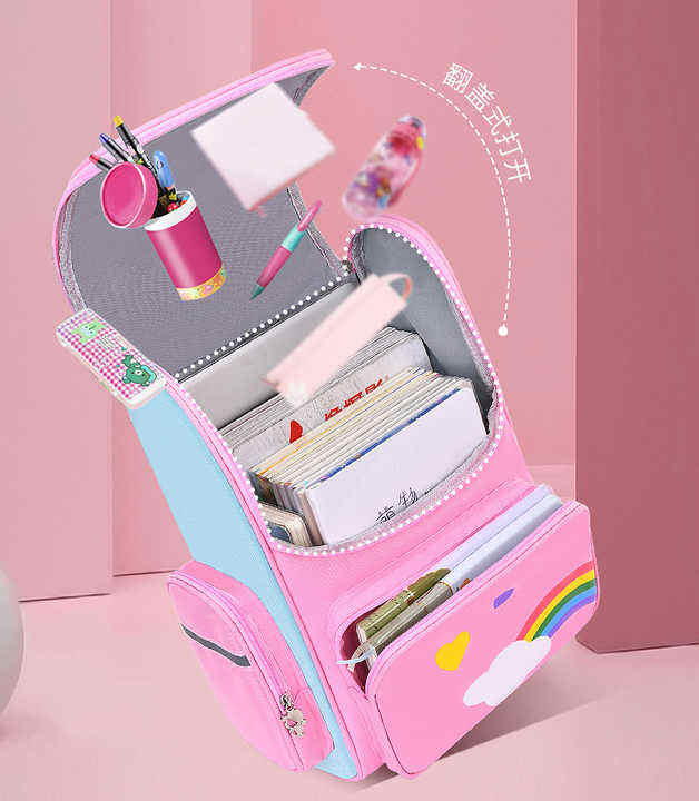 กระเป๋านักเรียนสำหรับเด็กกระเป๋าเป้สะพายหลังสำหรับเด็กมีความจุขนาดใหญ่ป้องกันกระดูกสันหลังปกป้องภาระรูปการ์ตูนน่ารักตามสั่ง