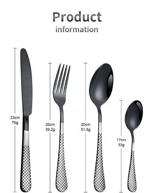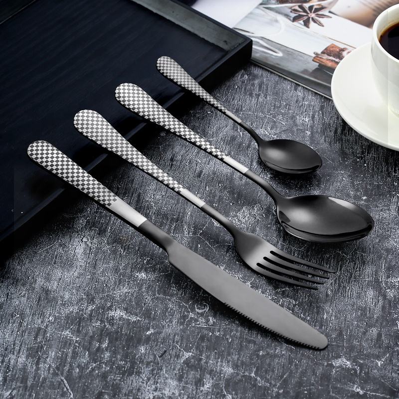 ชุดช้อนส้อมสีดำแบบสั่งทำชุดมีด4ชิ้นปราศจากสนิมทำจากสแตนเลสช้อนและส้อมสำหรับเสิร์ฟอาหารค่ำ