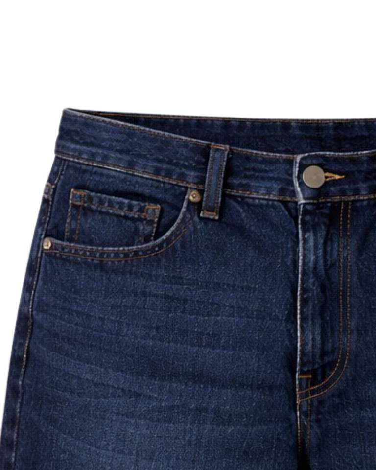 กางเกงยีนส์ขาสั้นสีน้ำเงินเข้มแบบสั่งทำพิเศษสำหรับผู้ชาย กางเกงยีนส์คลาสสิกทรงปกติ สวมใส่สบายในฤดูร้อน ติดกระดุม ผลิตตามสั่ง