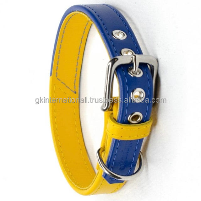 ปลอกคอสุนัขหนังพรีเมี่ยมแบบสองสีพร้อมหัวเข็มขัดและแหวนรูปตัว D ดีไซน์ตามสั่ง
