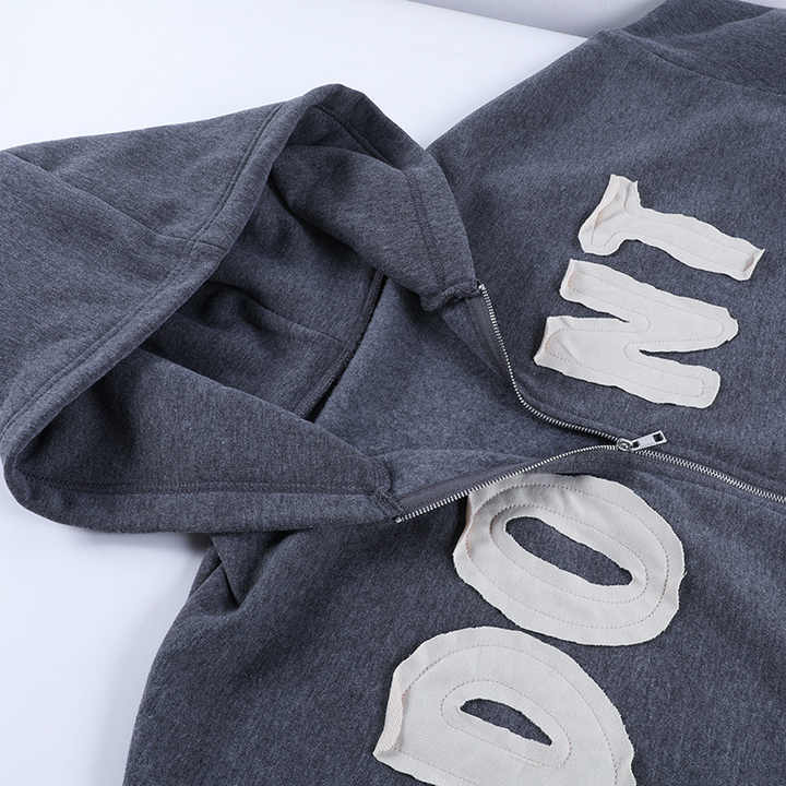 เสื้อฮู้ดดี้โอเวอร์ไซส์แบบยูนิเซ็กซ์ ดีไซน์เฉพาะตัว เป็นมิตรกับสิ่งแวดล้อม ตัดเย็บอย่างลงตัว ซิปแบบเรียบ ผ้าฝ้าย 100% ซักฟอกด้วยกรด ตกแต่งด้วยเทคนิคแอพพลิเคชั่นดิสชาร์จ