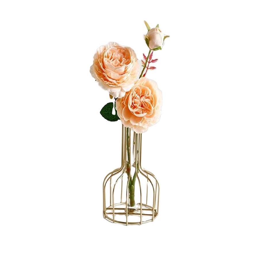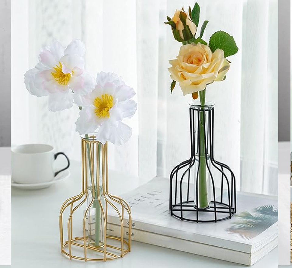 Customized Design Glass Vase Set Metal Rack Stand Eco-Friendly Handmade Floor Vase Geometric Shape Iron Art Plant Containers