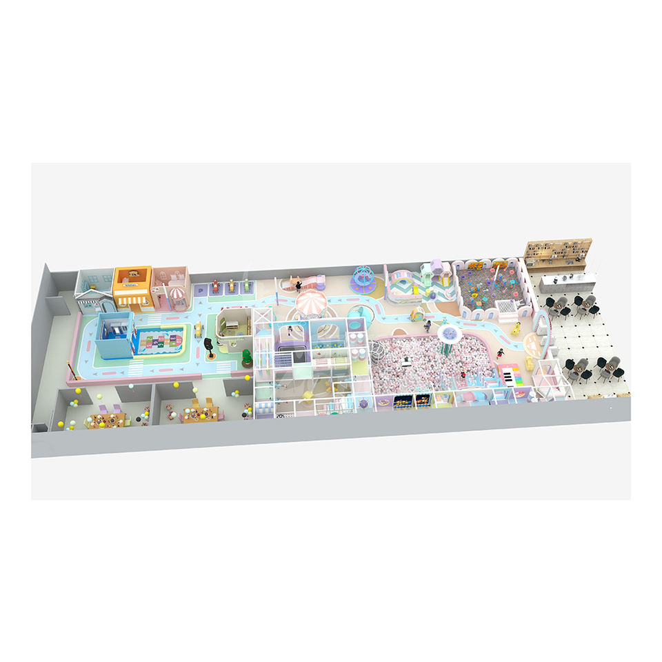 อุปกรณ์สนามเด็กเล่นในร่มแบบออกแบบตามสั่ง ปราสาทสนุกสำหรับเด็ก พร้อมห้องปาร์ตี้ พื้นที่เล่นนุ่มนวล คาเฟ่ และห้องเล่น