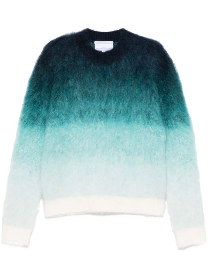 เสื้อฮู้ดไหมพรมถักลายไล่เฉดสีแบบกำหนดเองสำหรับผู้ชาย แขนยาว คอกลม ผ้าโมแฮร์