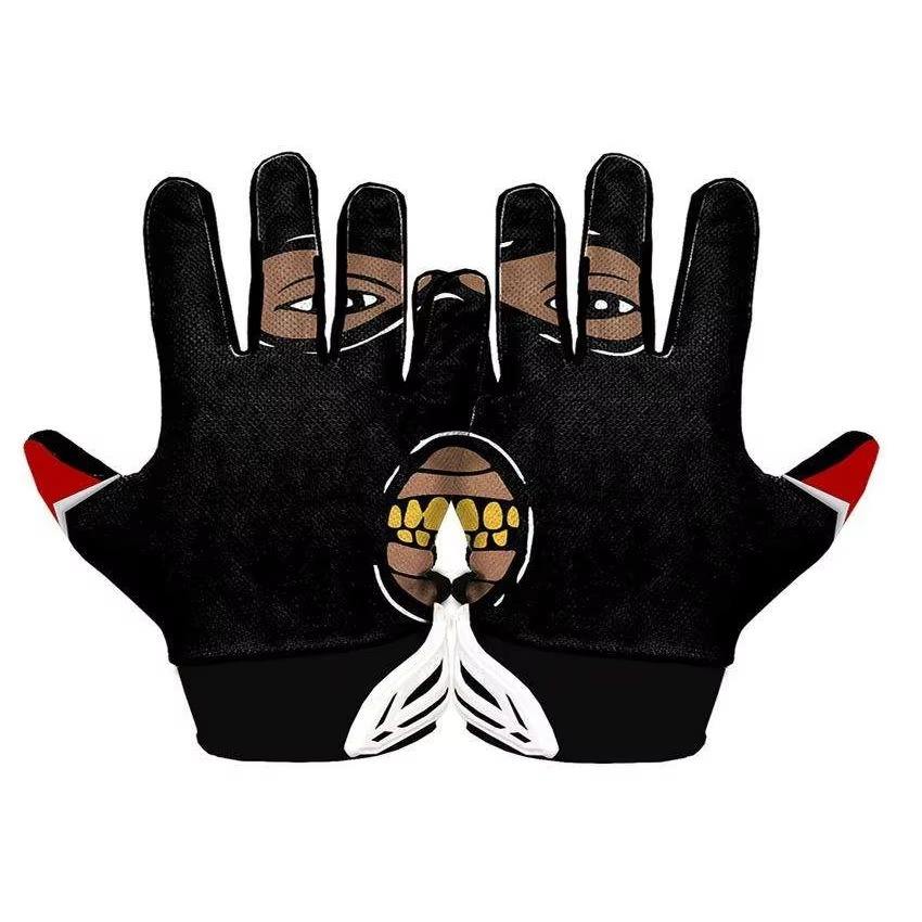 ถุงมือฟุตบอลอเมริกันแบบยืดหยุ่น ออกแบบโลโก้ได้ตามต้องการ พร้อมพื้นผิวเหนียวเพิ่มการยึดเกาะ ชุดกีฬา ถุงมือฟุตบอล