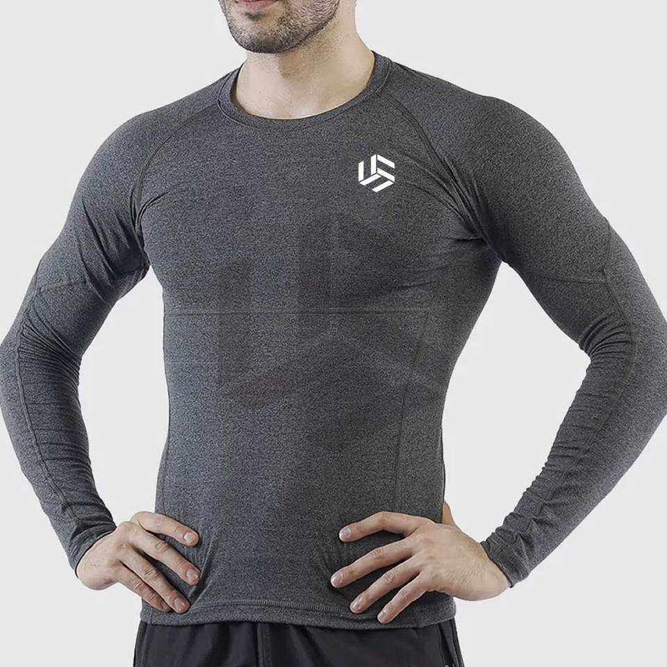 เสื้อยืดออกกำลังกายผู้ชายแขนยาว คอกลม ผ้าสแปนเด็กซ์/โพลีเอสเตอร์ แห้งเร็ว ออกแบบได้ตามต้องการ พร้อมลายตัวอักษรแบบถัก