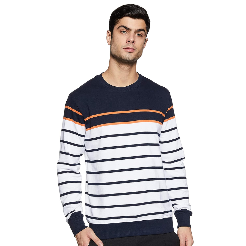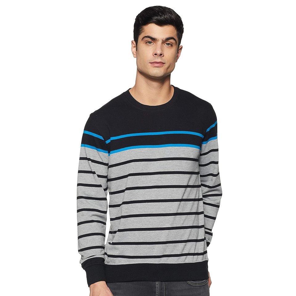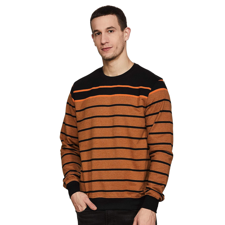 เสื้อสเวตเตอร์ลายทางของผู้ชายดีไซน์ตามสั่งเสื้อแฟชั่นคอกลมลำลองพิมพ์โลโก้อย่างมีสไตล์ผลิตในบังคลาเทศ