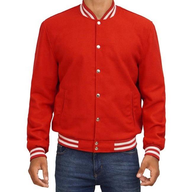 แจ็คเก็ตวาร์ซิตี้แบบกลับด้านได้สำหรับผู้ชาย ดีไซน์สั่งทำพิเศษ กันลม ปักลาย แขนหนัง คอตั้ง โลโก้ด้านหน้า