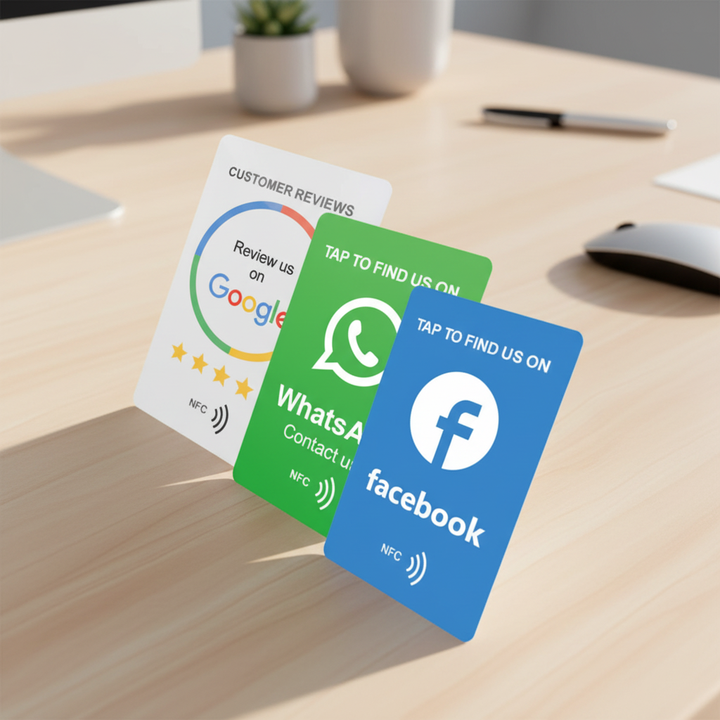 บัตรรีวิว Google RFID NFC PVC ออกแบบเองได้ ความถี่ 13.56Mhz บัตรธุรกิจ RFID สำหรับ Facebook Whatsapp Instagram