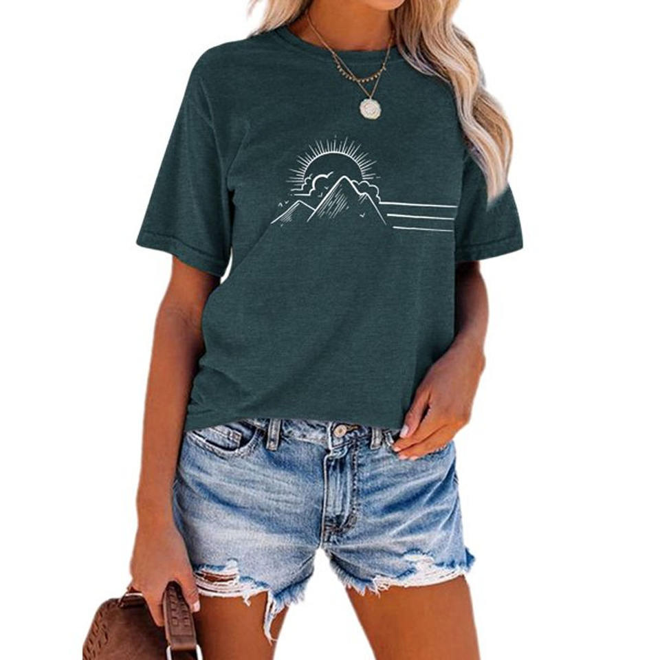 เสื้อยืดคอกลมผ้าฝ้าย100% สำหรับผู้หญิงเสื้อยืดพิมพ์ลายสีพื้นพร้อมกระดุมปักตกแต่ง