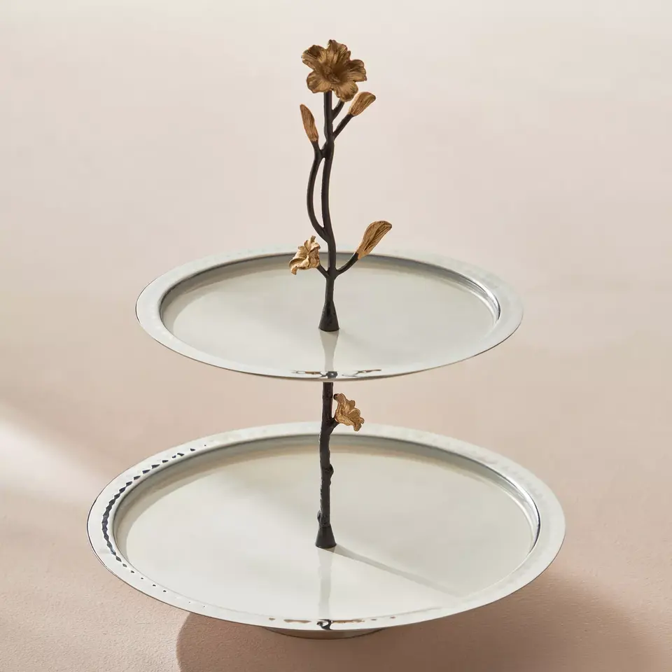 แท่นวางเค้กโลหะขัดเงาอุปกรณ์รับประทานอาหารของโต๊ะตกแต่งแบบโบราณที่วางเค้กวันเกิด