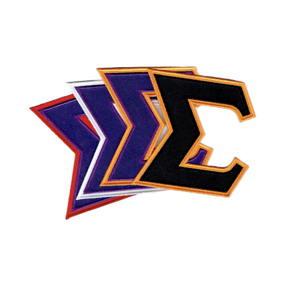 ตราสัญลักษณ์ผ้าทวิลปักลายตัวอักษรกรีกสำหรับสมาคมนักเรียนหญิงและนักเรียนชาย ออกแบบตามสั่ง สำหรับติดหมวก ของขวัญผ้า ผลิตในไต้หวัน