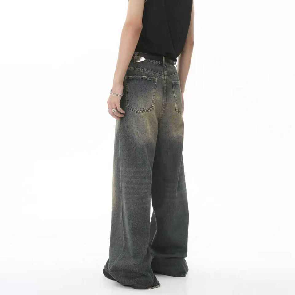 กางเกงยีนส์ผู้ชายดีไซน์สตรีทแวร์สั่งทำพิเศษ คุณภาพสูง ทรงหลวมสไตล์เรโทร กางเกงยีนส์ทรงแบ็กกี้สำหรับผู้ชาย
