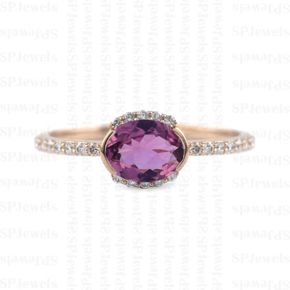 แหวนแต่งงานออกแบบได้ตามต้องการ18K แหวนเพชรทัวร์มาลีนสีเหลืองกุหลาบขาวทองวงรีสีชมพูแข็งพร้อมจัดส่งอย่างรวดเร็ว