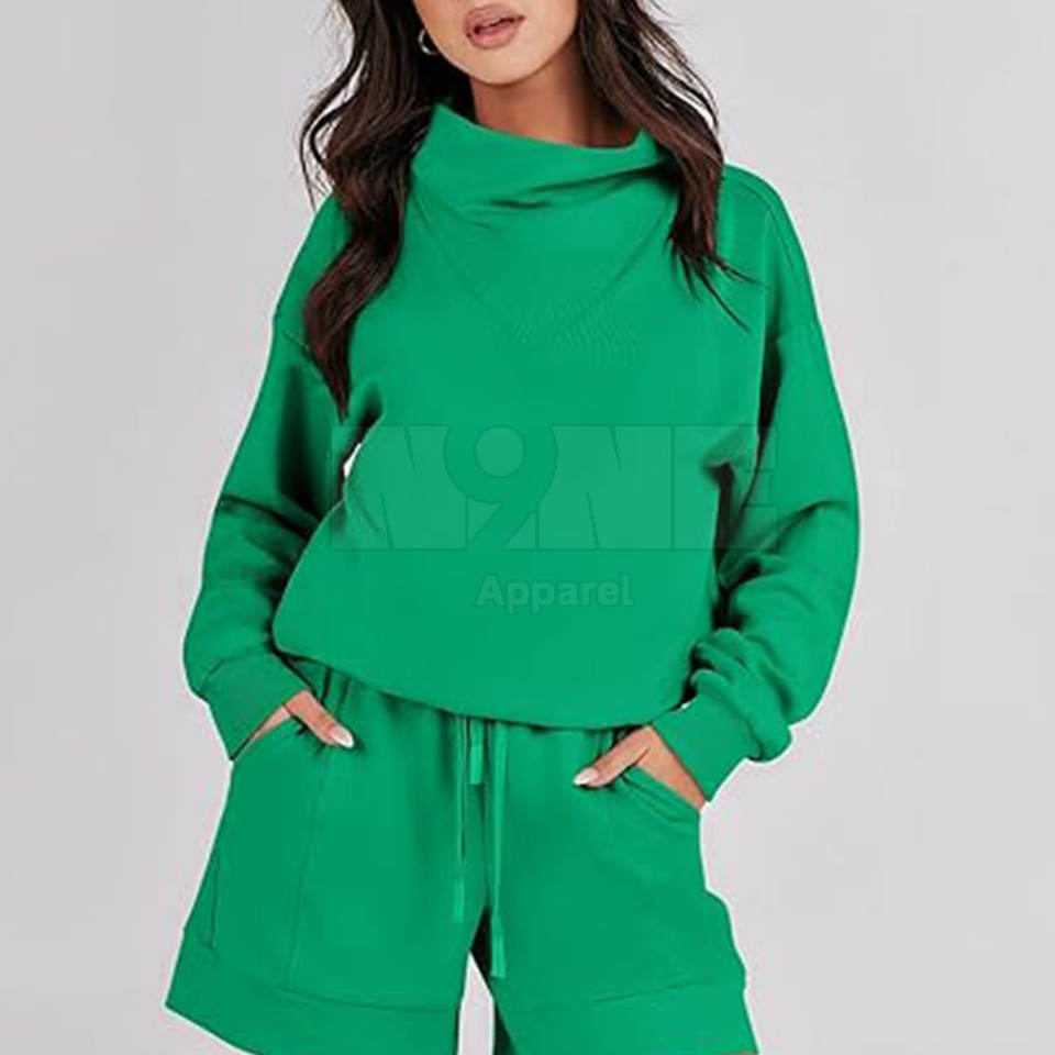 ชุดเซ็ตเสื้อฮู้ดและกางเกงขาสั้นสำหรับผู้หญิง