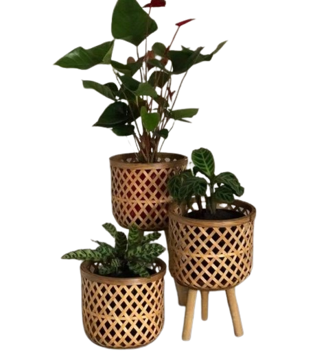 ที่ปลูกกระถางต้นไม้หวายธรรมชาติขาไม้สำหรับลานห้องนั่งเล่นระเบียงคาเฟ่สวนดีไซน์ตามสั่ง