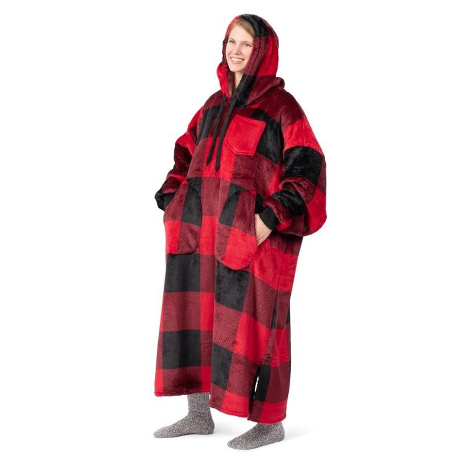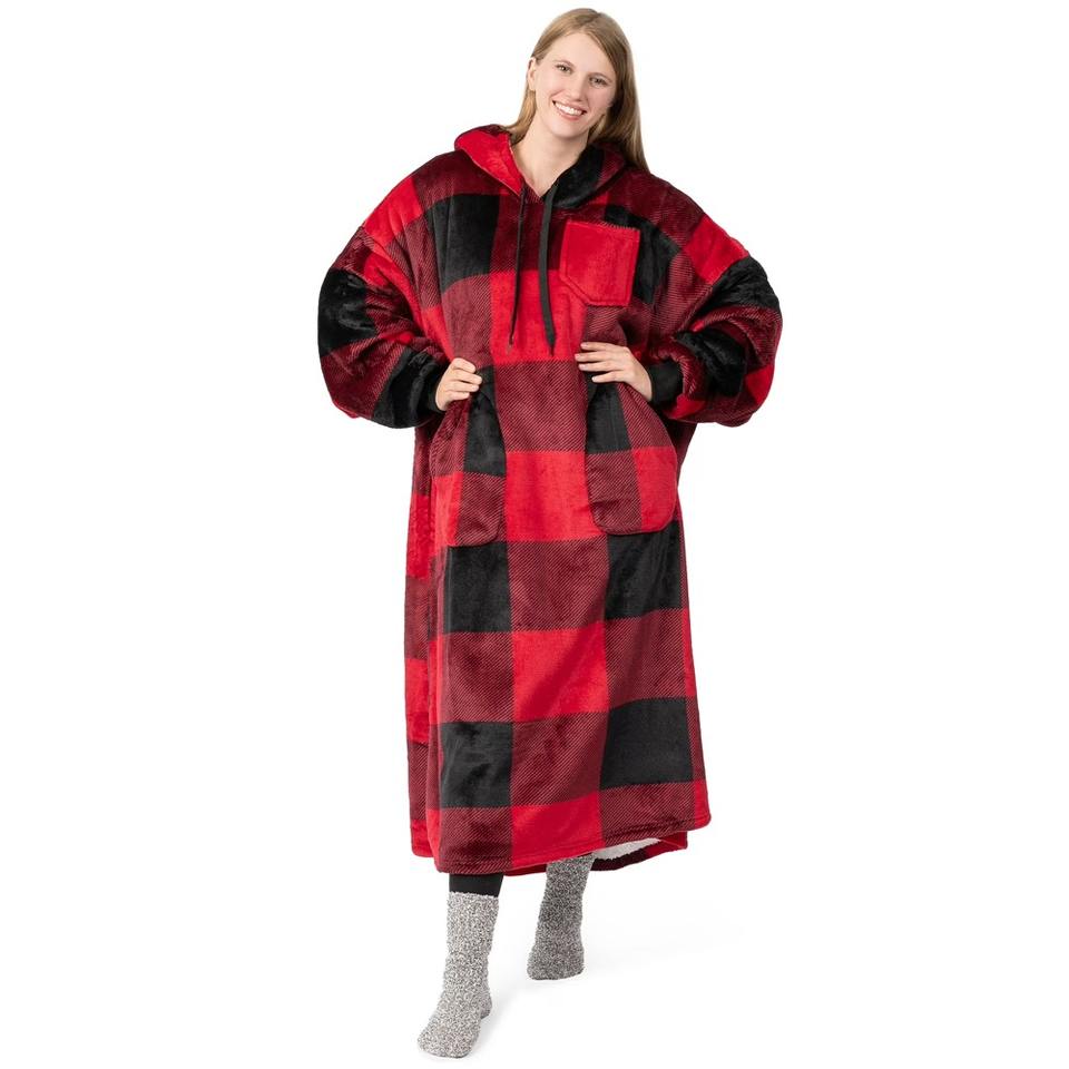 เสื้อฮู้ดดี้ผ้าฟลานเนลเชอร์ปาแบบสวมใส่ได้สำหรับผู้หญิงและผู้ชาย ดีไซน์สั่งทำพิเศษ อุ่นสบาย ขนาดใหญ่พิเศษ มีแขนเสื้อและกระเป๋า