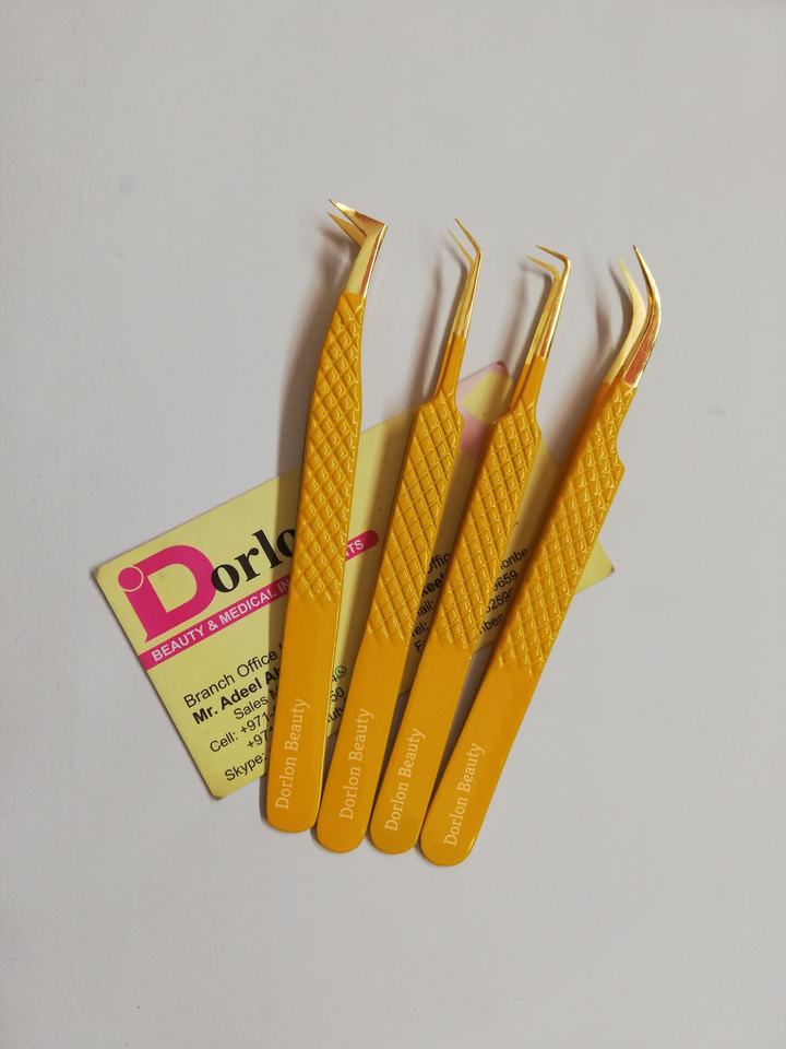 ขนตาปลอมสีเหลือง45 90องศาสำหรับต่อขนตาแบบมีด้ามจับเพชรแบบแยกวอลลุ่มออกแบบโลโก้ได้ตามต้องการ