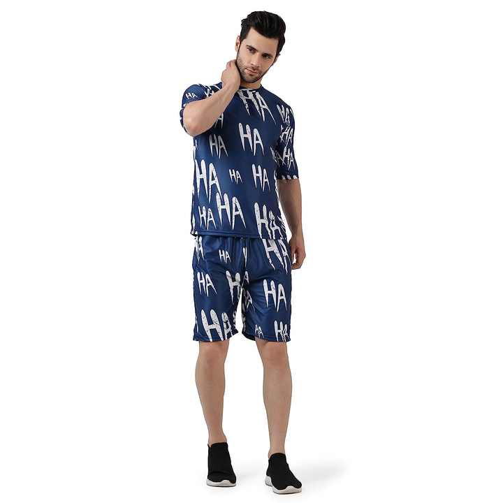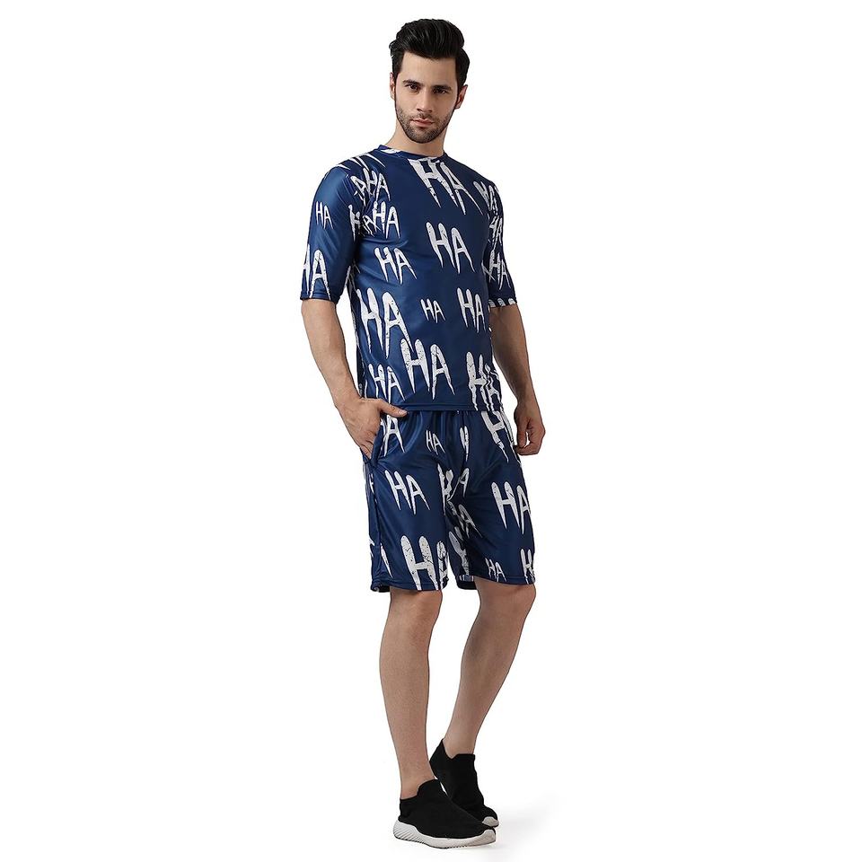 ชุดเซ็ตเสื้อยืดแขนสั้นคอกลมและกางเกงขาสั้นพิมพ์ลายดิจิทัลแบบกำหนดเองสำหรับผู้ชาย ชุดลำลอง 2 ชิ้น ทรงเข้ารูปสำหรับฤดูร้อน