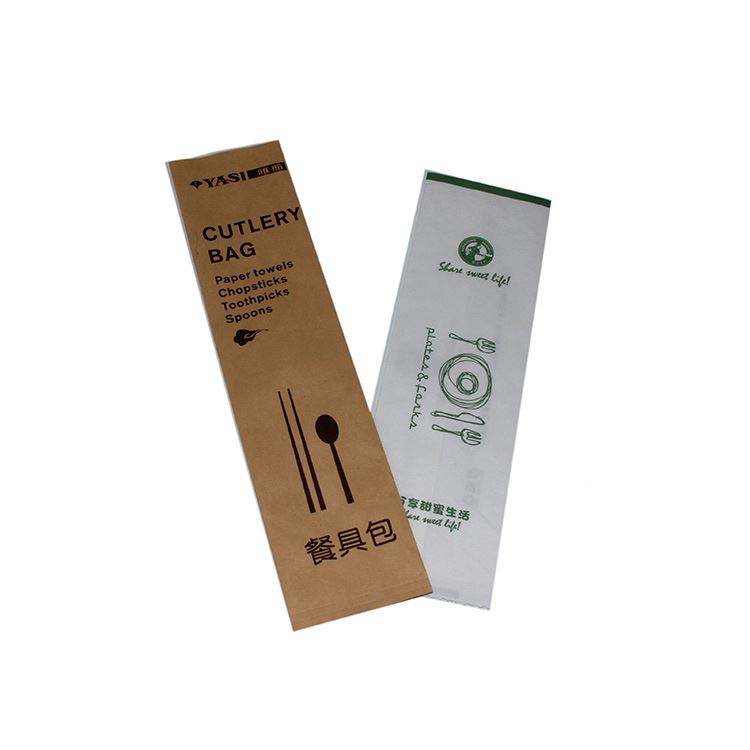 ชุดช้อนส้อมตะเกียบแบบใช้แล้วทิ้งพร้อมถุงกระดาษปิดผนึกด้วยความร้อนสำหรับบรรจุภัณฑ์อาหารแบบนำกลับบ้าน