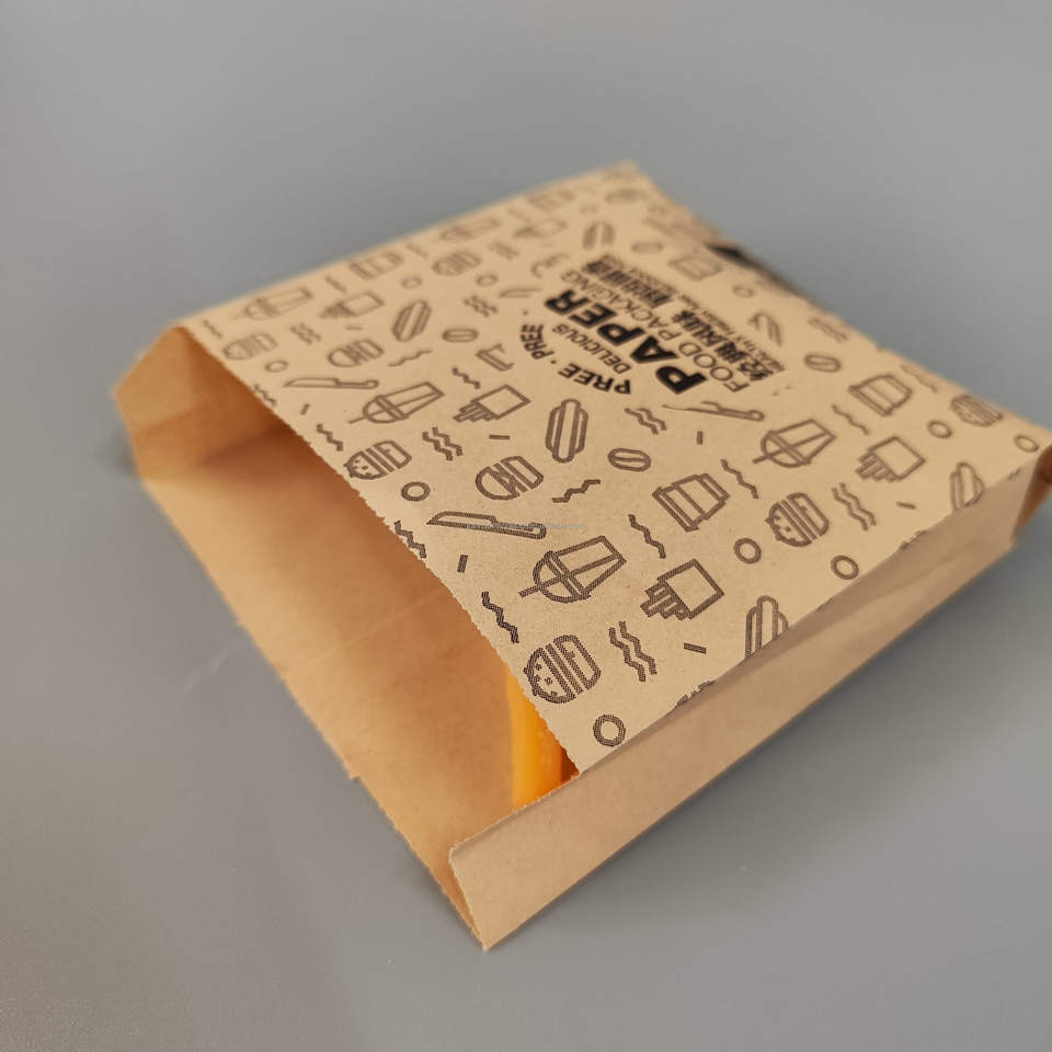 ถุงกระดาษคราฟท์แบบใช้แล้วทิ้งพื้นสี่เหลี่ยมกันน้ำมันสำหรับบรรจุอาหารอาหาร