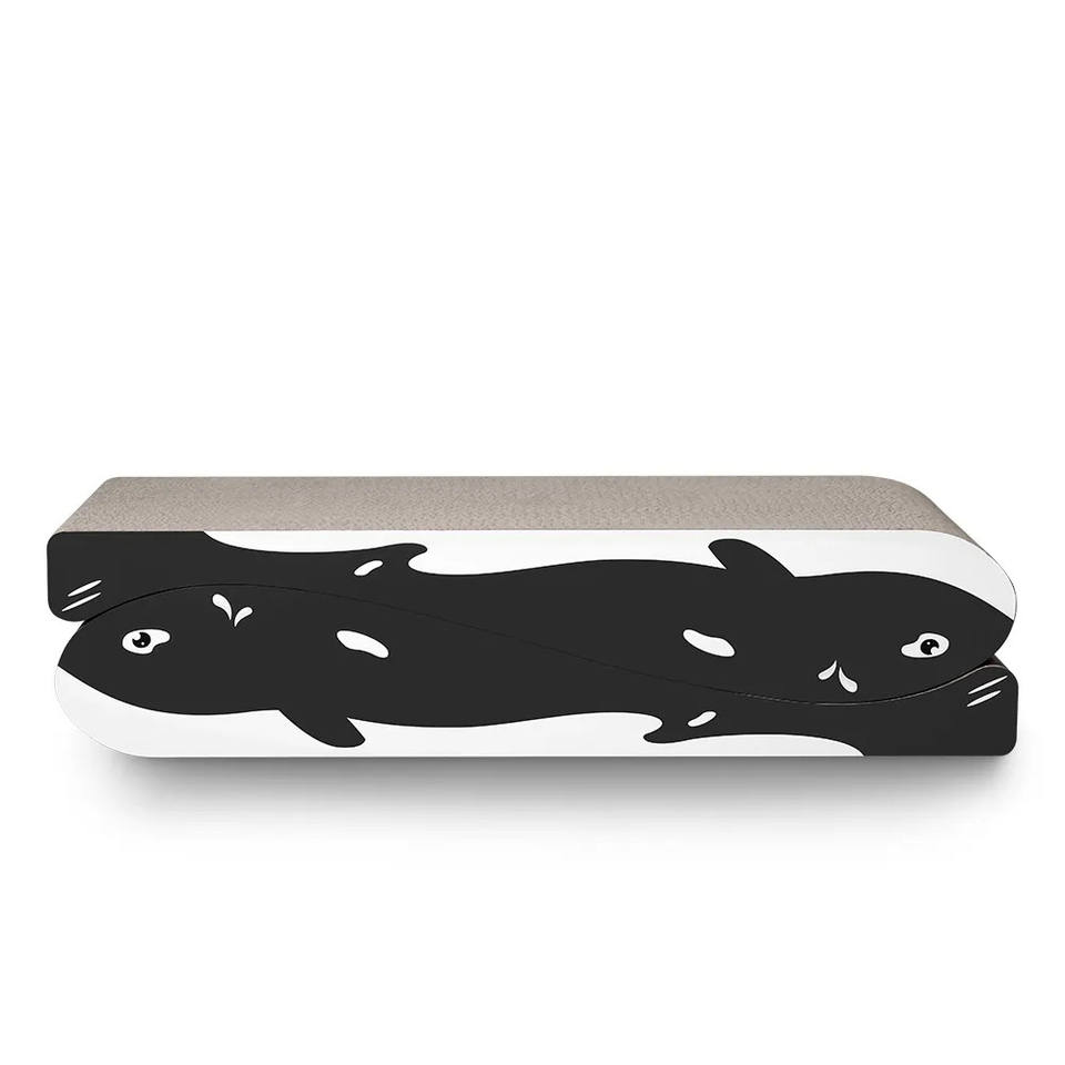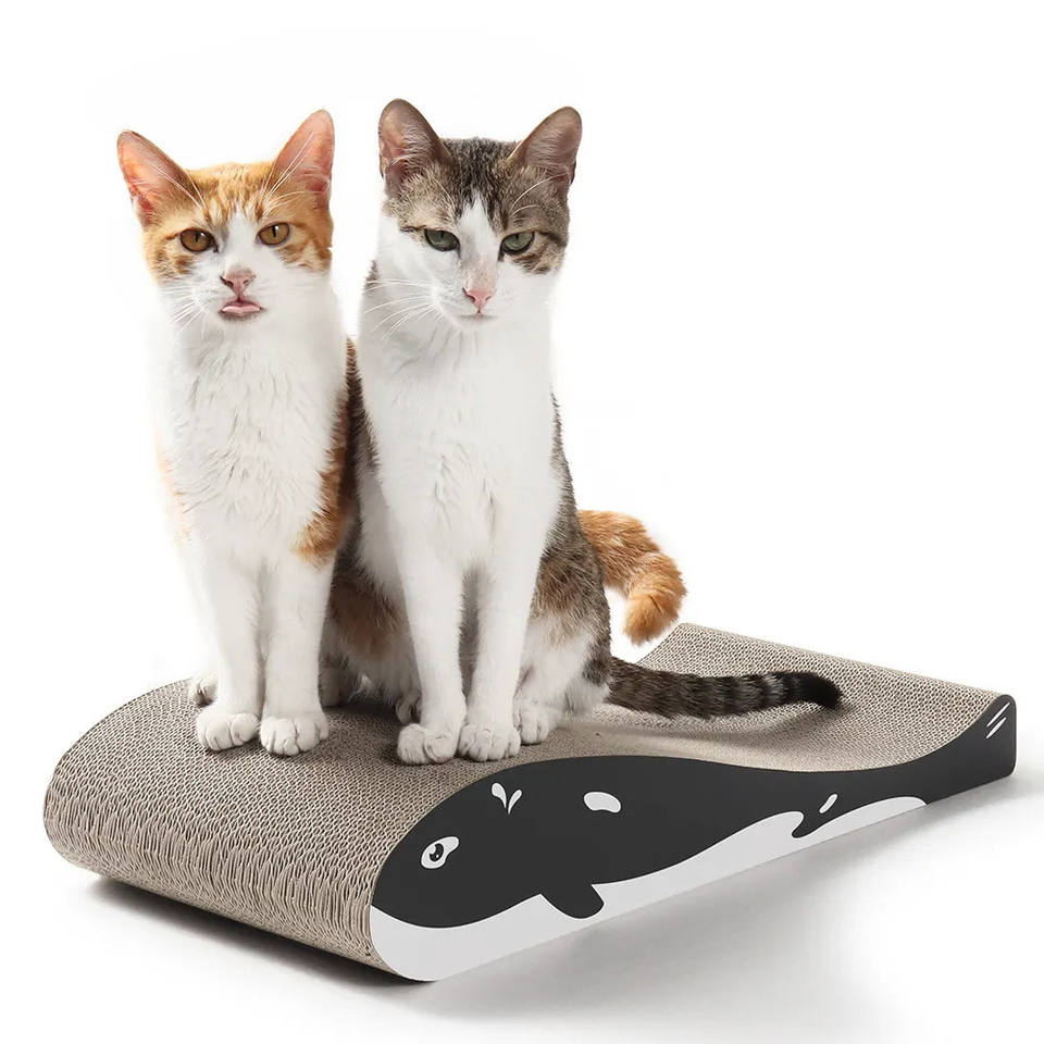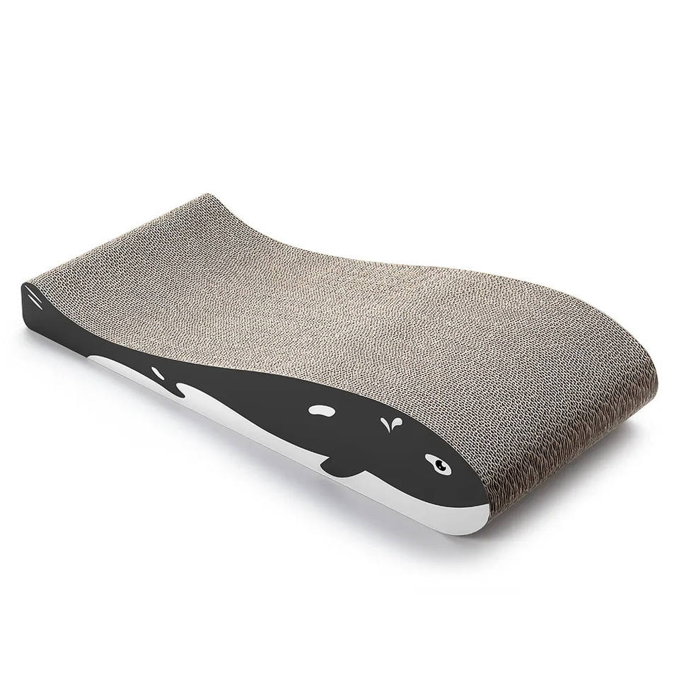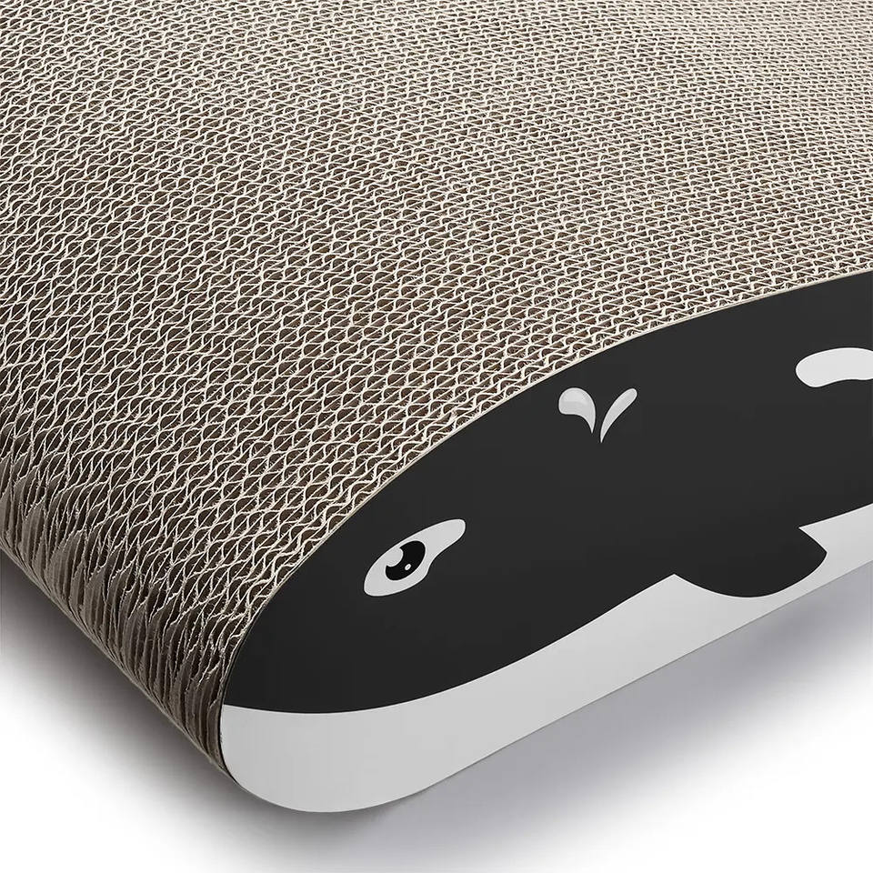 แผ่นลับเล็บแมวสองด้านทนทานรูปทรงปลาวาฬกระดาษความหนาแน่นสูงดีไซน์โค้งสองด้านออกแบบให้แมวของเล่นรับสารภาพ