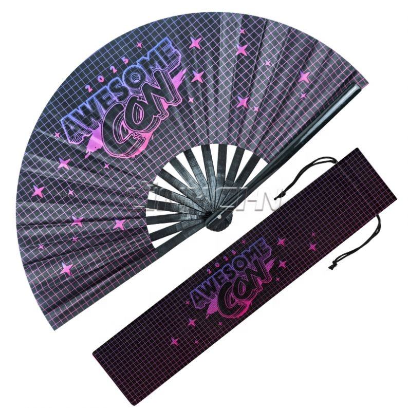 พัดลมนีออนสองด้านพร้อมที่จับงานฝีมือไม้ไผ่ปรับแต่งได้ตามต้องการสำหรับผู้คลั่งไคล้