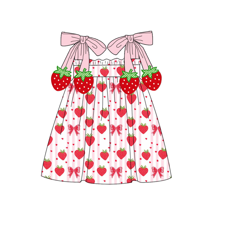 ชุดเดรสเด็กแบบสั่งทำพิเศษ ลายสตรอว์เบอร์รี่น่ารัก พร้อมโบว์ ชุดเดรสเด็กเล็ก แต่งระบาย แขนกุด สำหรับฤดูใบไม้ผลิ ชุดเดรสเด็กผู้หญิงน่ารัก