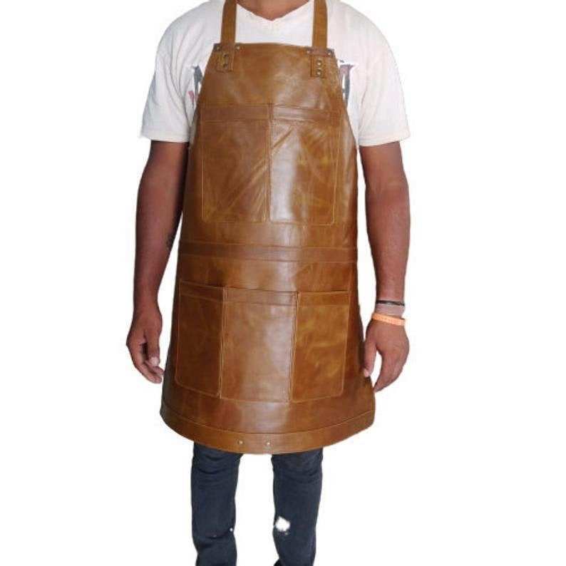 ผ้ากันเปื้อนหนังสีน้ำตาลขนาดใหญ่สำหรับ LAN-0049ผ้ากันเปื้อนงานครัวปรับได้มีกระเป๋าขนาดใหญ่สำหรับทำอาหารทนทานงานตามสั่ง