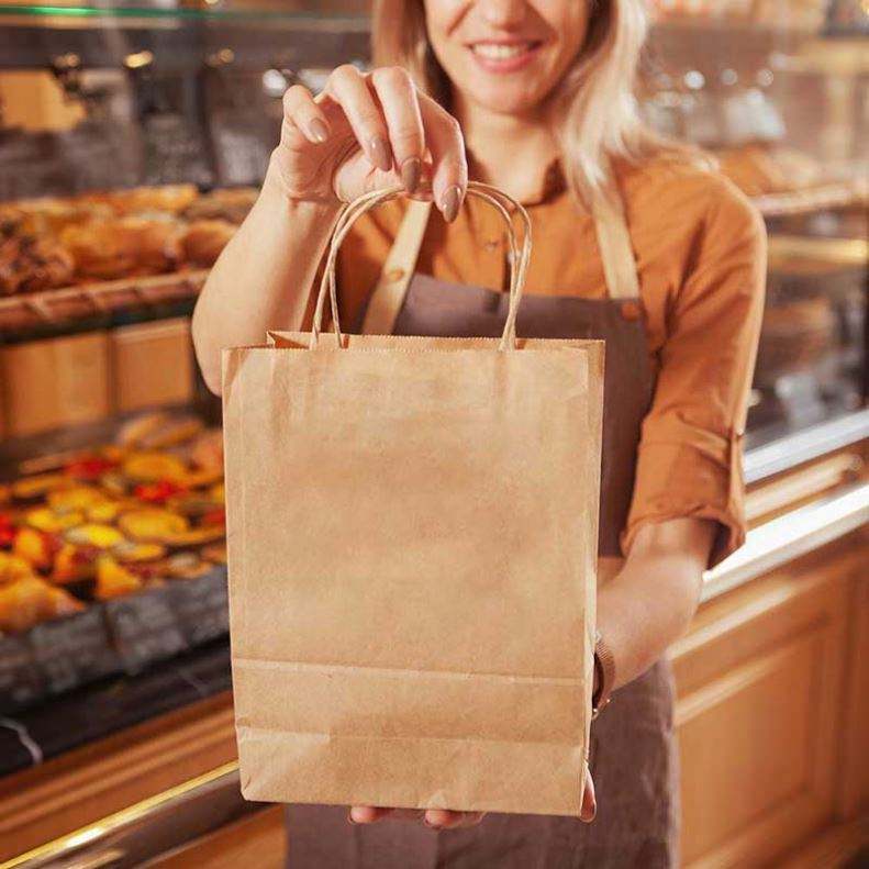 ถุงกระดาษคราฟท์แบบคลาสสิก ทนทาน ผลิตตามสั่ง สำหรับใส่อาหาร ขนมอบ ของขวัญ และช้อปปิ้ง