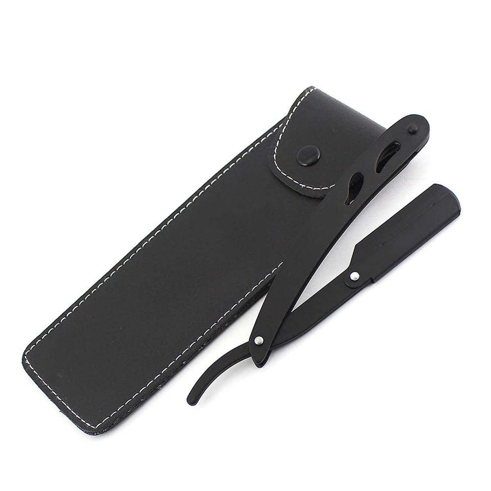 มีดโกนหนวดแบบตรงขอบตรงสำหรับผู้ชายมีดโกนหนวดสีดำมีคุณสมบัติด้านความปลอดภัยสำหรับการโกน