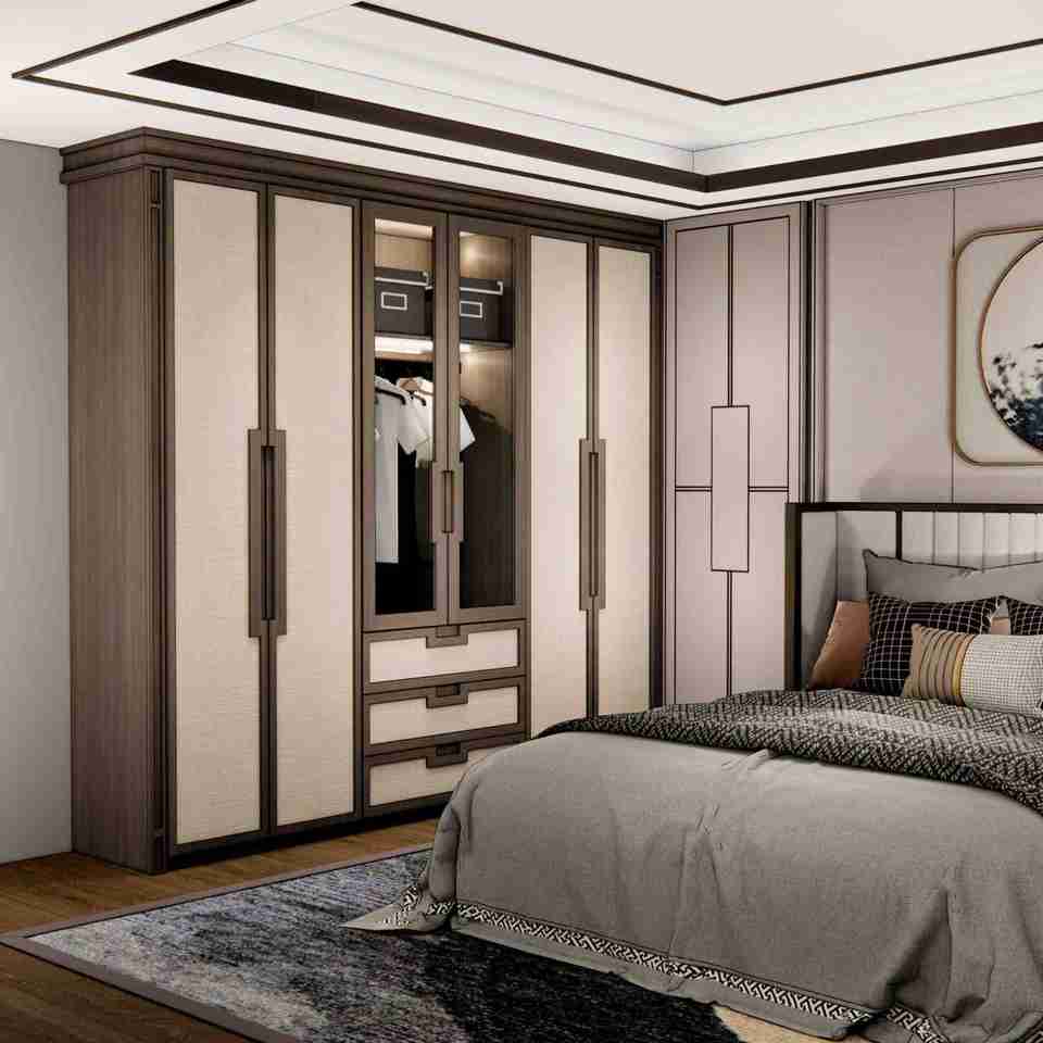 ตู้เสื้อผ้าไม้โอ๊คคู่ประตูคู่เฟอร์นิเจอร์ไม้อัดล่าสุดคลาสสิกชิ้นส่วนง่ายตามสั่ง