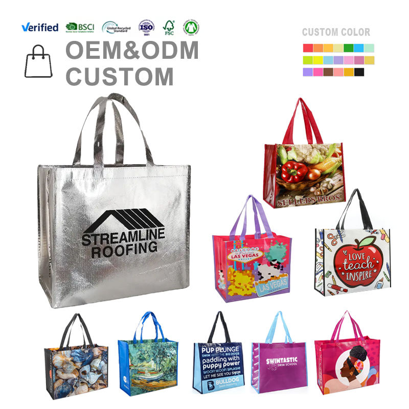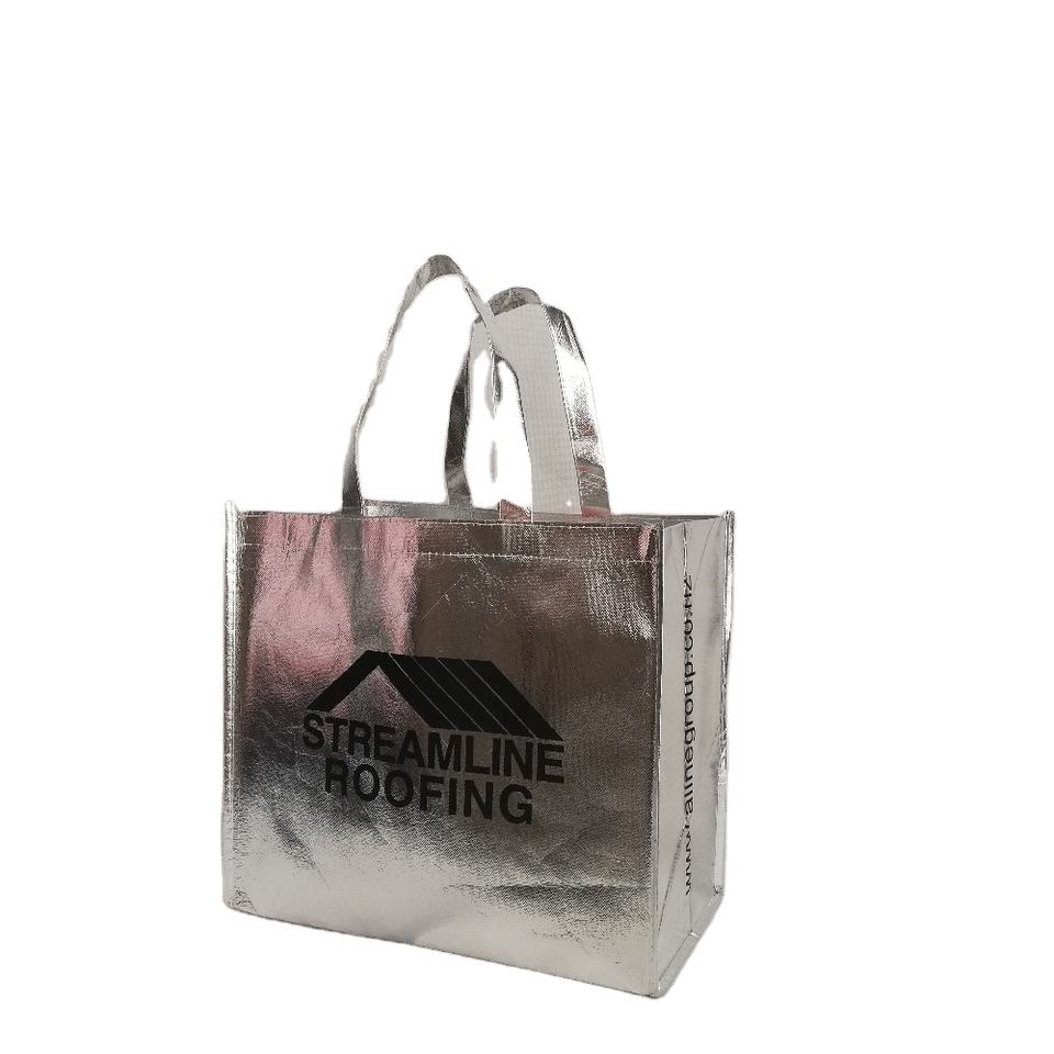 ถุงช้อปปิ้งรักษ์โลกแบบกำหนดเอง ถุงผ้าไม่ทอเคลือบเงินเมทัลลิก