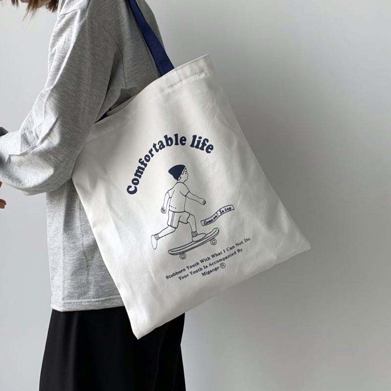 กระเป๋าผ้าแคนวาสหูเชือกแบบกำหนดเองเป็นมิตรกับสิ่งแวดล้อม พร้อมซิปปิด สำหรับการช้อปปิ้งและการใช้งานกลางแจ้ง
