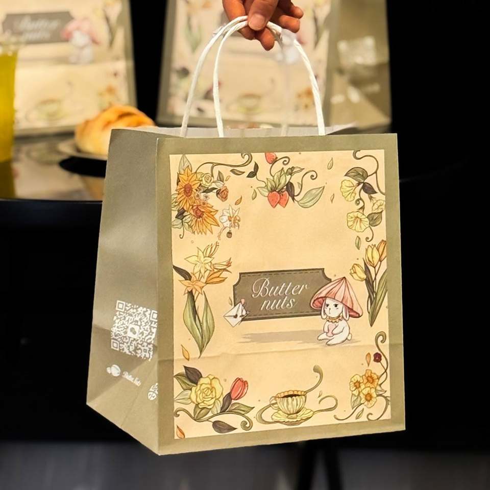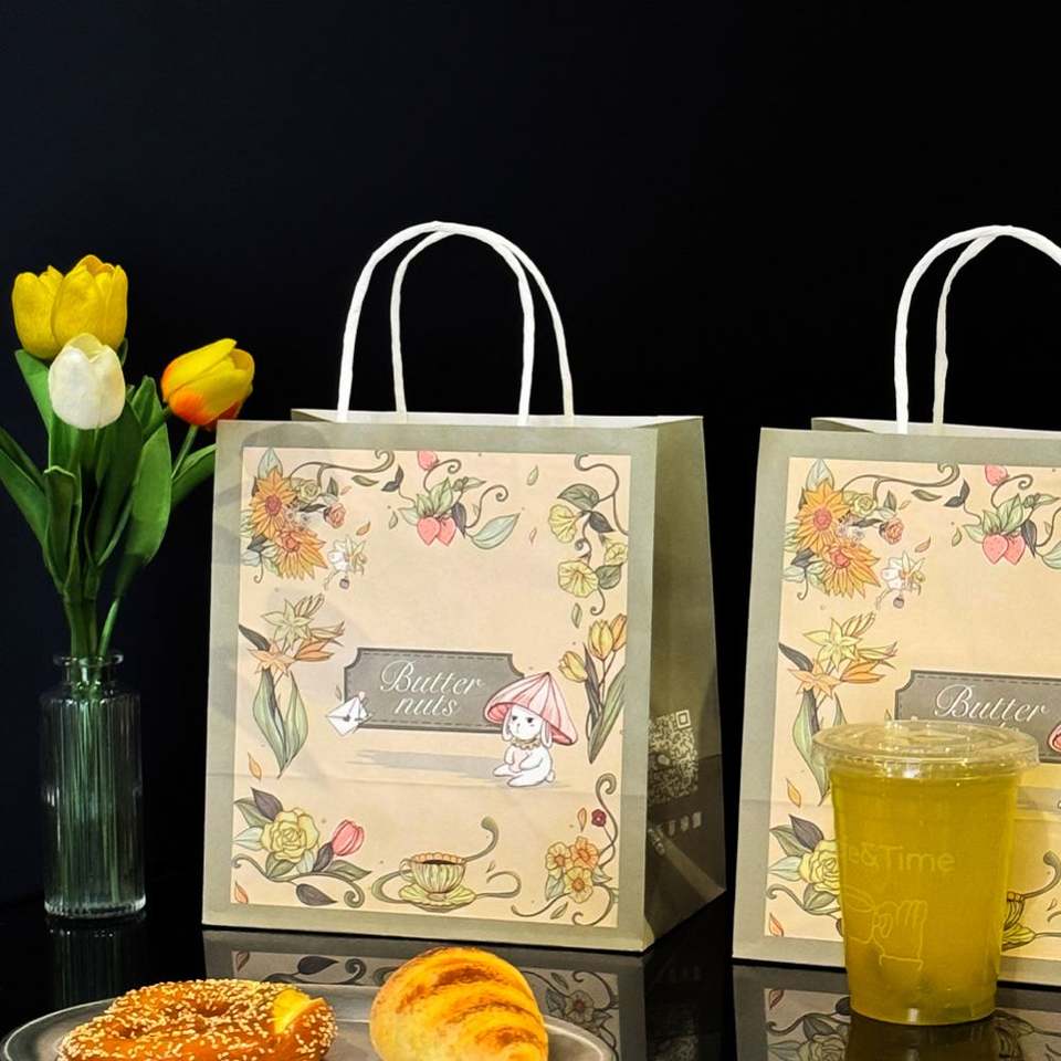 ถุงกระดาษคราฟท์รักษ์โลกแบบกำหนดเองสำหรับใช้ในซูเปอร์มาร์เก็ต สำหรับบรรจุภัณฑ์ขนม เบเกอรี่ กาแฟ เค้ก สำหรับร้านค้าเพื่อการส่งเสริมการขาย