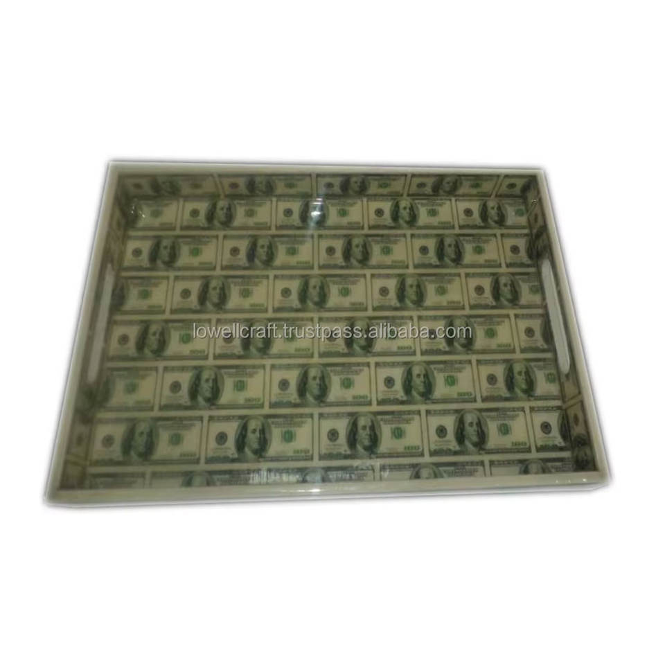ถาดเสิร์ฟไม้พิมพ์ลายเคลือบที่กำหนดเองถาดอาหารทำมือสำหรับเสิร์ฟผลไม้มื้ออาหารและขนมเคลือบตกแต่ง
