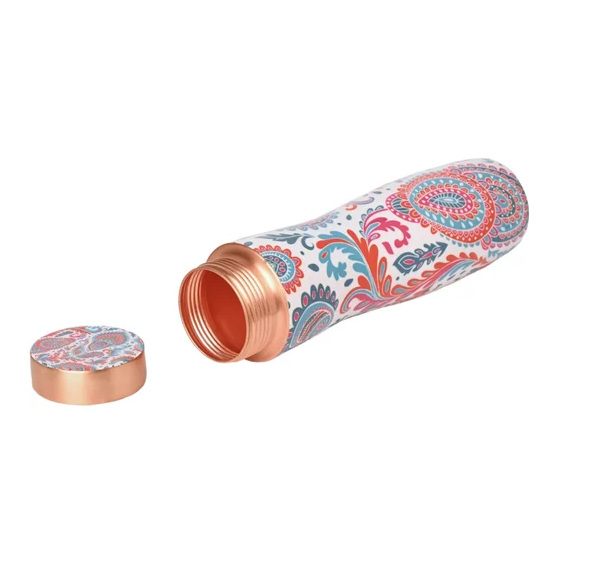 ขวดน้ำทองแดงบริสุทธิ์ขวดน้ำทองแดงพิมพ์ลายเคลือบงานตามสั่งขวดน้ำทำจากทองแดงวินเทจทำด้วยมือ