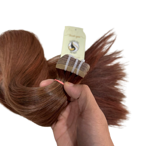 เทปผมมนุษย์แบบปรับแต่งได้ผมต่อแบบชาวรัสเซียผมต่อแบบดิบสีทองแดงสีแดงเข้ม